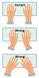 - Typing Technique: Try not to “plant” wrists on the desk or wrist rests when typing. Instead, practice typing with very little pressure at the palms. This is referred to as floating and may take a little practice. Wrist rests can provide support when your hands are resting.