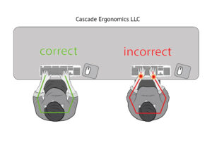 | Hands turn inward or outward when typing | Can be caused by wider shoulders, body or armrests causing arms to reach way in from the sides. Hands have to rotate to fit the keyboard which can cause discomfort.